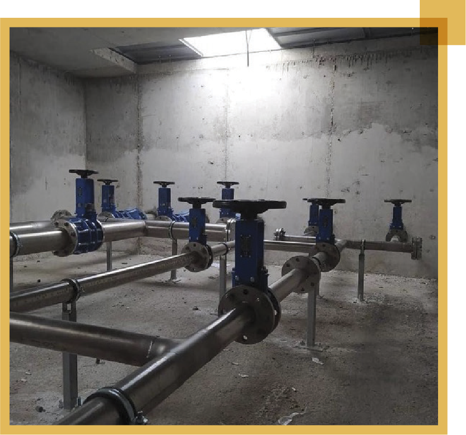 Endüstriyel atık su arıtma tesislerinde suyun giriş çıkış vanaları, muslukları, tahliye boruları ve numune alma musluklarının bulunduğu bölümlerdir. Suyun depolanan alanlarından ayrı bir bölme olarak tasarlanır.
