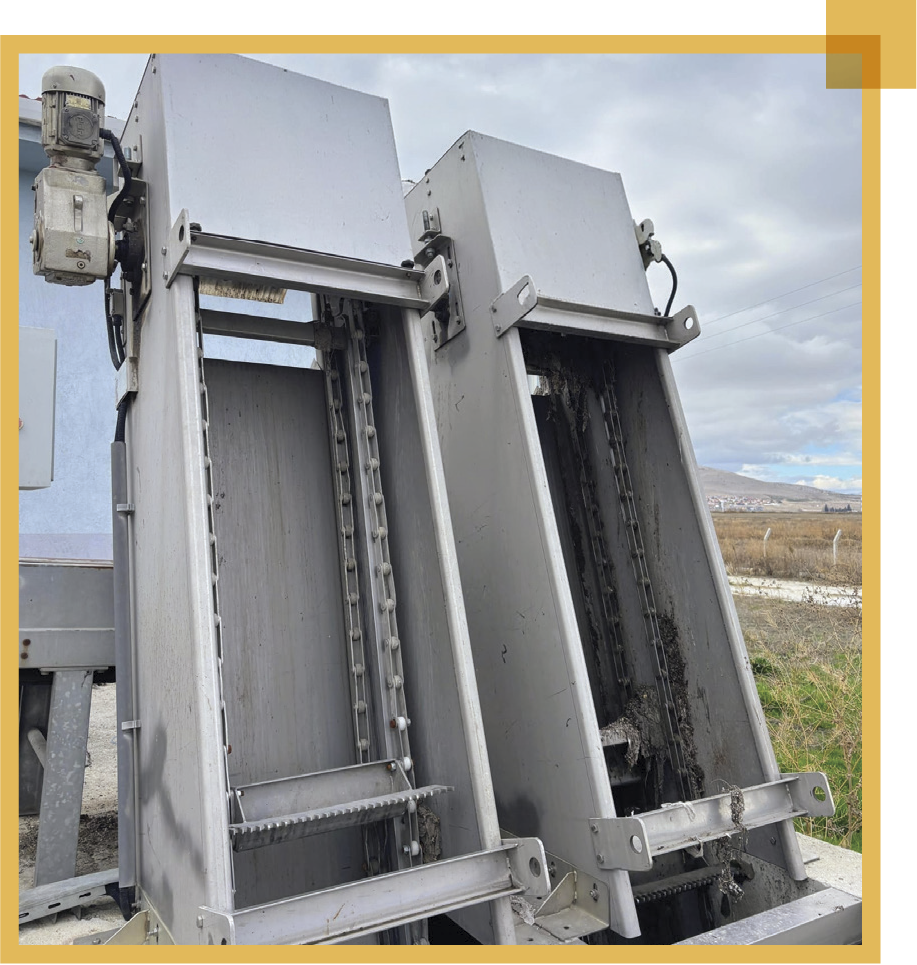Atıksu arıtma tesisi giriş yapısında bulunur. Atıksu da bulunan kaba atığın sistemden uzaklaştırılmasını sağlar.